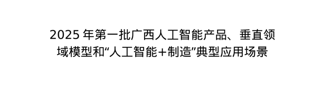 这份材料是 2025 年第一批广西人工智能相关成果清单,涵盖人工智能产品、垂直领域模型、“人工智能 + 制造” 典型应用场景三大板块,全面展现广西 AI 产业与实体经济融合的发展成效。