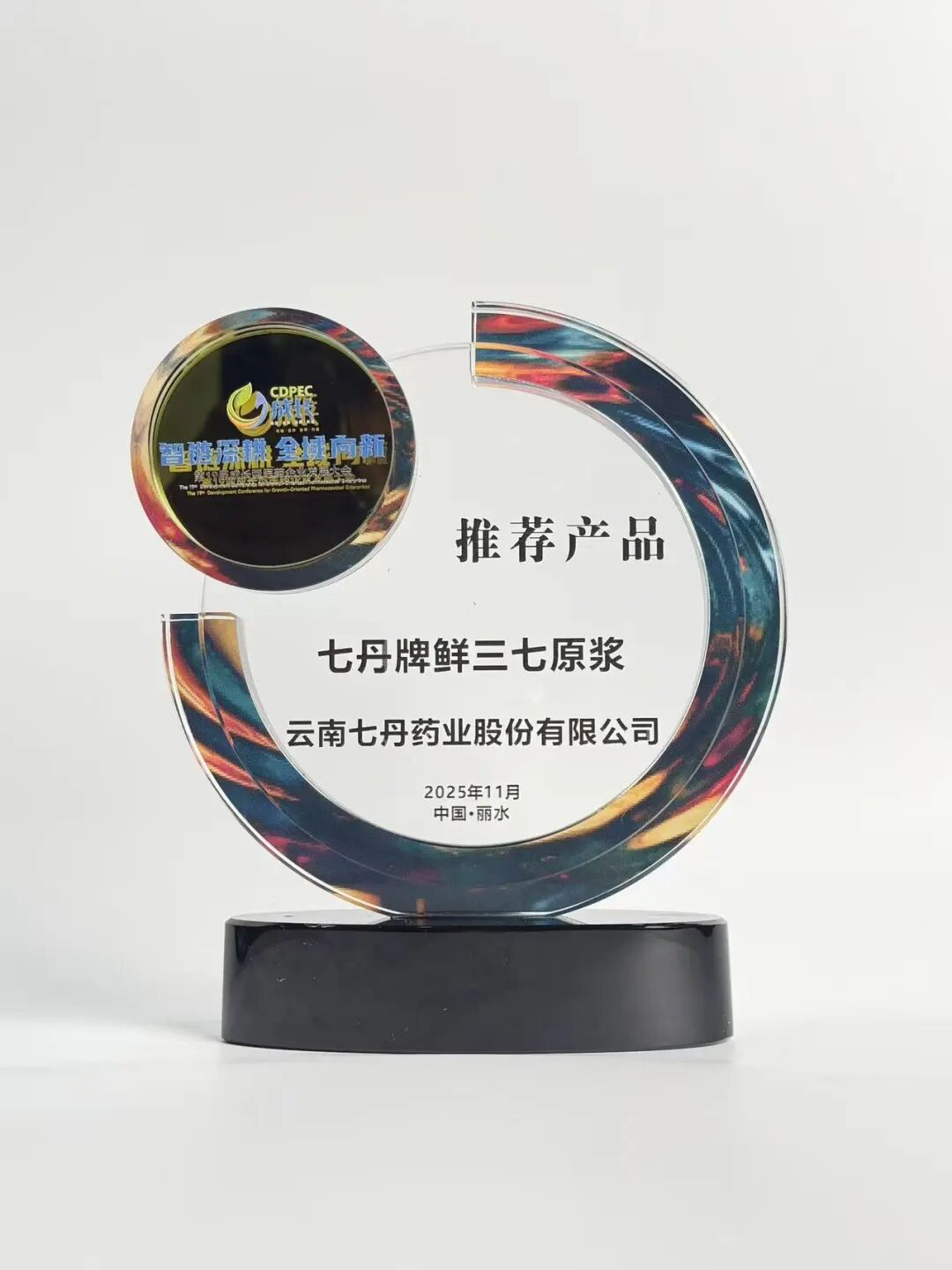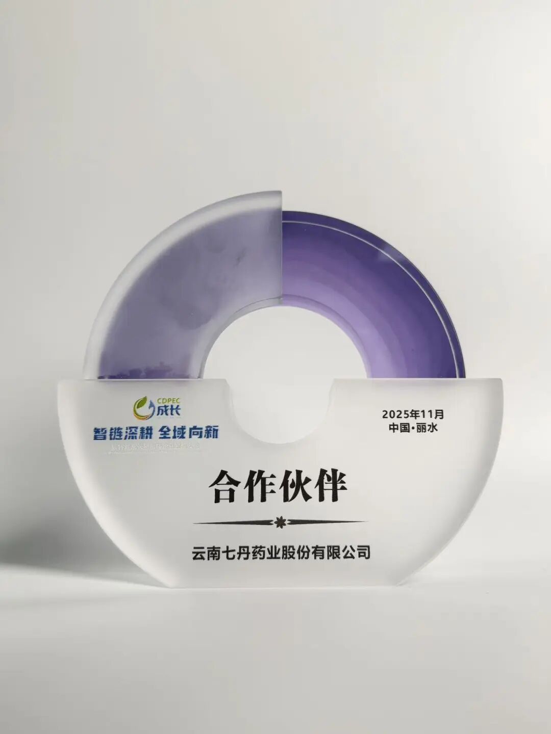 公司在中国医药物资协会第19届成长型医药企业发展大会上,被授予“合作伙伴”称号,公司的七丹牌鲜三七原浆获评“推荐产品”