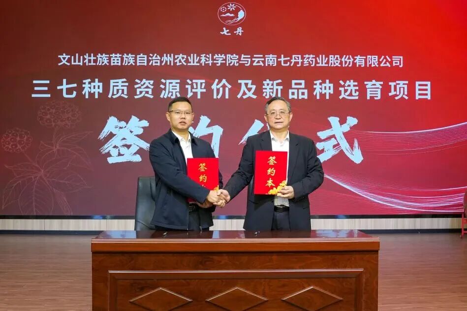 七丹药业与文山州农业科学院举行“三七种质资源评价及新品种选育项目”合作协议签约仪式。