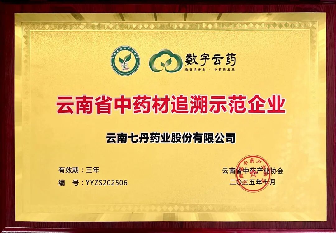 七丹药业荣获“云南省中药材追溯示范企业”称号