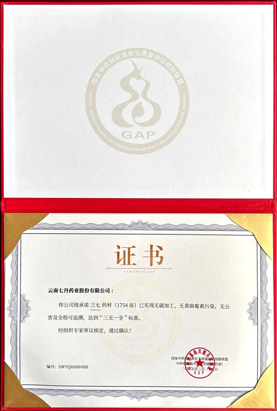 七丹药业荣获“三无一全”认证,三七品质再获认可