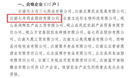 云南七丹药业股份有限公司相继通过农业产业化省级重点龙头企业监测以及州级重点龙头企业运行监测复审合格认定。