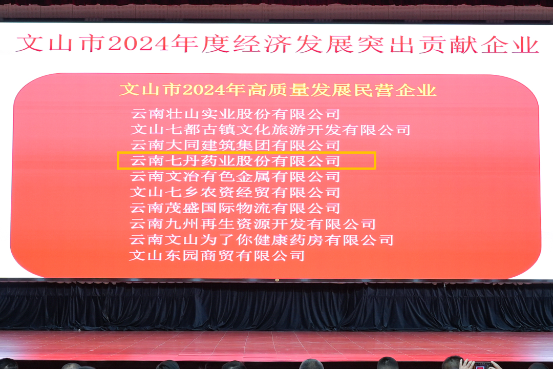 七丹药业荣获“文山市2024年高质量发展民营企业”称号