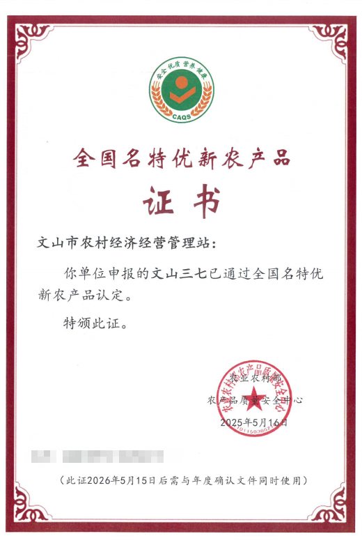 七丹药业参与申报的“文山三七”获全国名特优新农产品认定