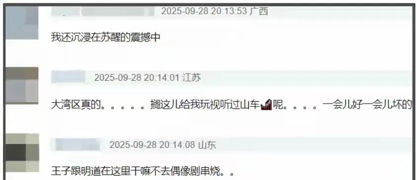 有广西网友吐槽:“还沉浸在苏醒的‘震撼’里,下一秒就被合唱整懵了”,山东网友更直接:“王子和明道来这儿干嘛?不如去演偶像剧串烧”。
