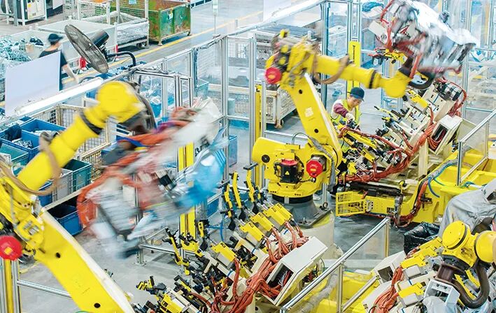在上海市嘉定区新时达机器人有限公司的超级工厂内,机械臂快速挥舞,生产线上的六轴工业机器人以每12分钟一台的节奏高效产出。走下产线的“机器人同事”,将在新能源汽车、锂电池、船舶等行业生产一线“上岗”。