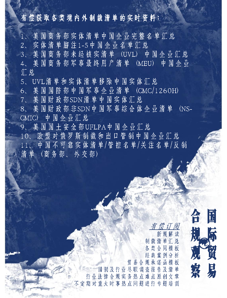 国际贸易合规观察公众号: