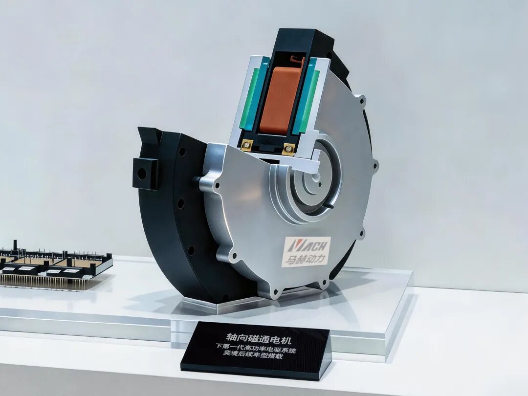 面向高阶智驾与极致空间需求,轴向磁通分布式电驱以双转子对称设计、浸没式油冷、碳纤维壳体、三维仿真开发实现技术突破。相较传统径向电机,重量减少约20%、功率密度提升约35%,整车Y方向尺寸节省50%。单台峰值功率225kW、峰值扭矩666Nm、最高转速12000rpm,总质量30kg,功率密度超7.5kW/kg,可实现整车分布式驱动,支持原地掉头、蟹行变线,显著提升安全性与续航表现,重塑车内空间格局,是高性能纯电、高端越野、智能网联车型的理想动力方案。