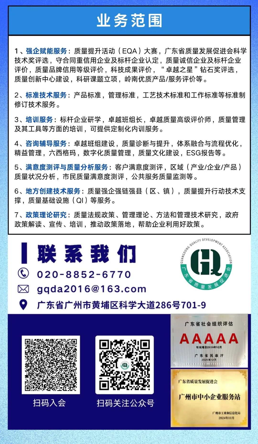 3.生态赋能,持续成长:自动加入“广东卓越企业联盟”,享受年度质量峰会、标杆互访、专家闭门沙龙资源,优先推荐参评各级质量荣誉、典型案例,链接两业协同优质资源。