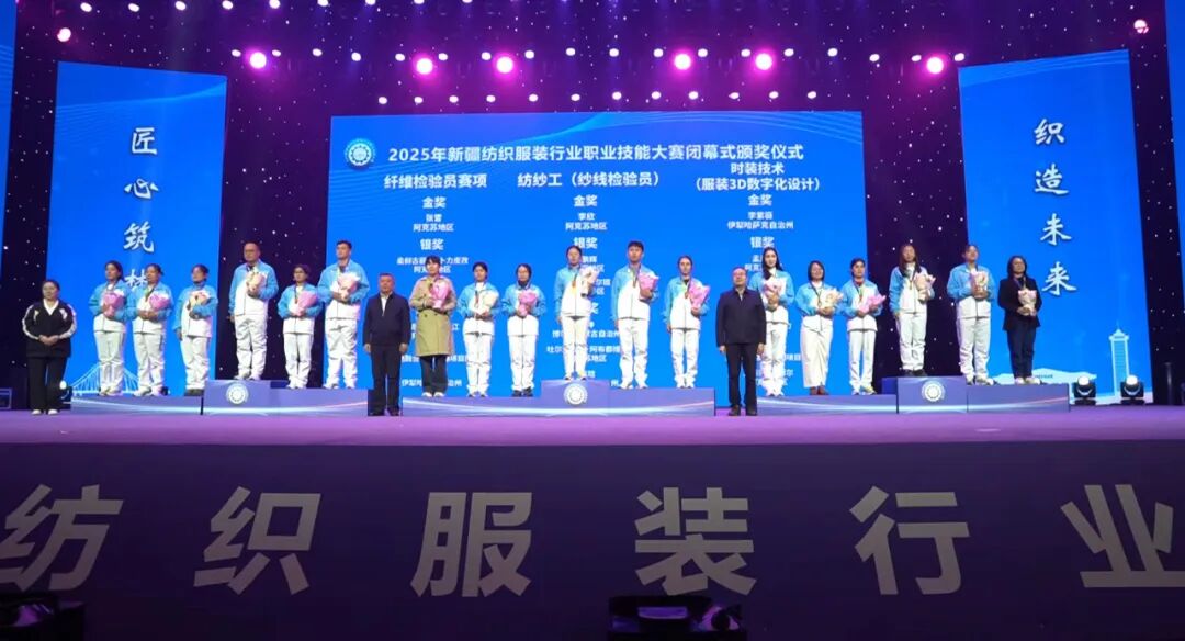 10月21日,2025年新疆纺织服装行业职业技能大赛在阿克苏落幕。本次大赛以“匠心筑梦 织造未来”为主题,汇聚来自全区及新疆生产建设兵团的16支代表队、近300名选手同台竞技,最终70余名选手凭借精湛技艺分别斩获金、银、铜奖。