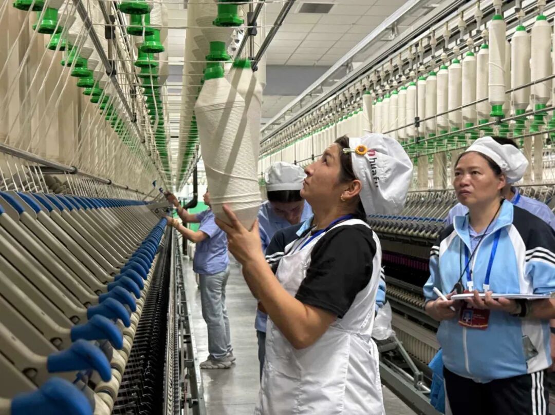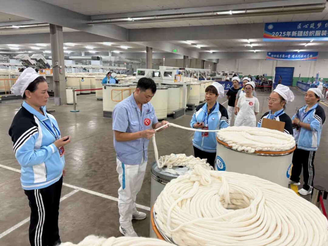 比赛中,选手们在细纱机前指尖翻飞、接线精准,在裁剪台旁尺规游走、版型精妙,在检验室内目光如炬、严把质量,充分展现了新时代新疆纺织服装产业工人的专业技能水平。