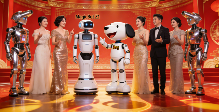 MagicBot Z1和MagicDog组队,和马丽、马凡舒等“马姓艺人”同台互动,机器人跟着艺人学梗、做动作,机械感的搞笑瞬间,承包你除夕夜的第一波笑声~