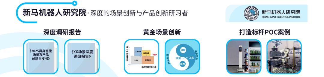 新马机器人研究院主要定位于做深度的场景创新和产品创新的研习者,希望不断找寻创新的底层密码。大家有需要深度调研、场景共创、打造标杆落地案例可以一起深度聊聊,实战派专家为您保驾护航。