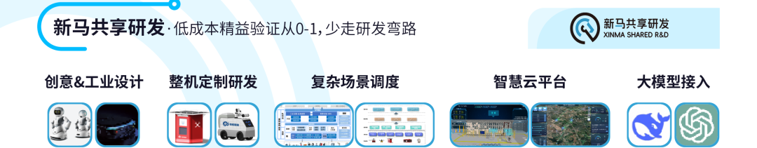 新马共享研发是全球首个在机器人行业提出共享研发的解决方案的,共享共用研发资源,解决公司创业初期成本太高、人员不好管理的问题。