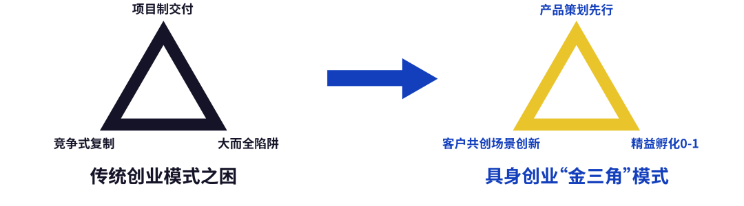机器人行业的产品和企业战略有时候是一体两面的,这里的产品是大产品概念。作为具身创业新模式“金三角”的第一角,产品的升维是第一位的,也是企业的核心抓手。