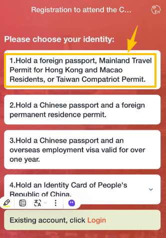 2.注册成功之后,由于这个客户是有自己的Badge铭牌,那么第二步,绑定自己现有的铭牌,“Bind exsisting badge”,这里面的步骤确实很复杂,会需要涉及到客户要填写自己的铭牌号码,就是买家证“9”开头的那一串数字。以及需要客户的护照号和国别。