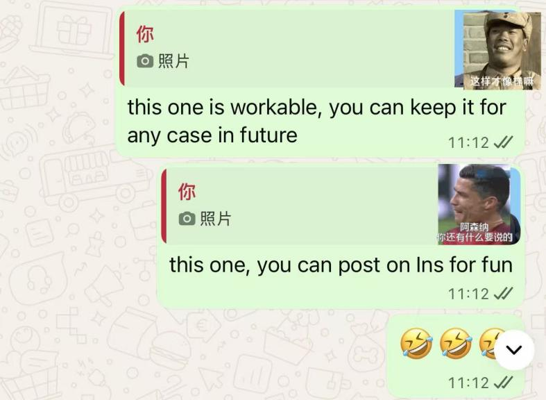 Tips: 斥“巨资”搞定的买家蓝底照,留在自己手上也没用,别忘了也可以调侃一下客户,反正赠人玫瑰,手留什么也不知道!