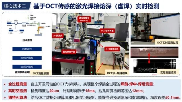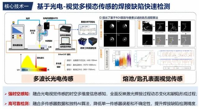 自主研制国内首套高精度、高可靠性的激光焊接全过程多模态智能检测系统,结合焊接机理和 AI模型,实时检测熔深及表面/内部缺陷(如气孔、飞溅、咬边等),解决精密焊接质量精准控形控性的关键瓶颈难题