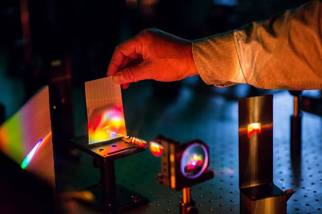 德国卡塞尔大学的研究人员,使用持续时间短至千万亿分之一秒的极短激光脉冲照射物质,并通过频闪观测法以慢动作形式观察其超快动力学过程(飞秒光谱技术)。借助光学合成器,在时间维度上对激光进行波形调控,从而通过定制化能量传递实现对超快动力学的精准控制(超快激光控制)