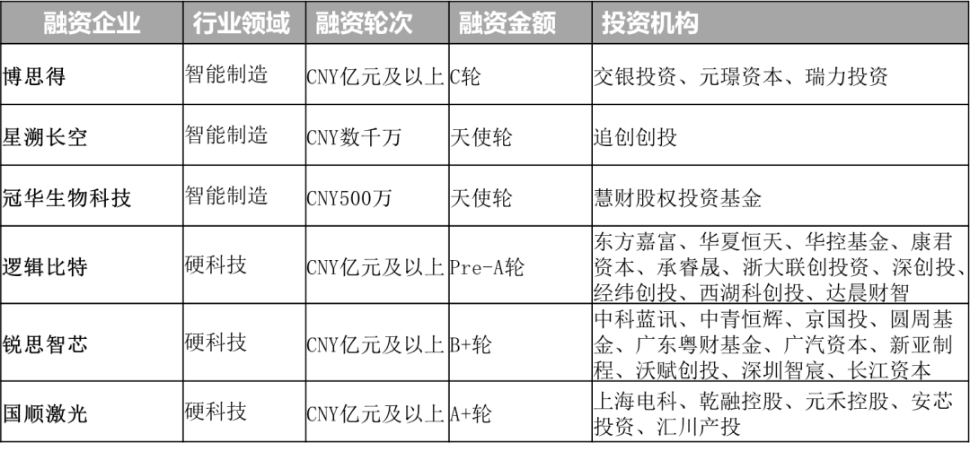 1.逻辑比特完成CNY亿元及以上Pre-A轮融资