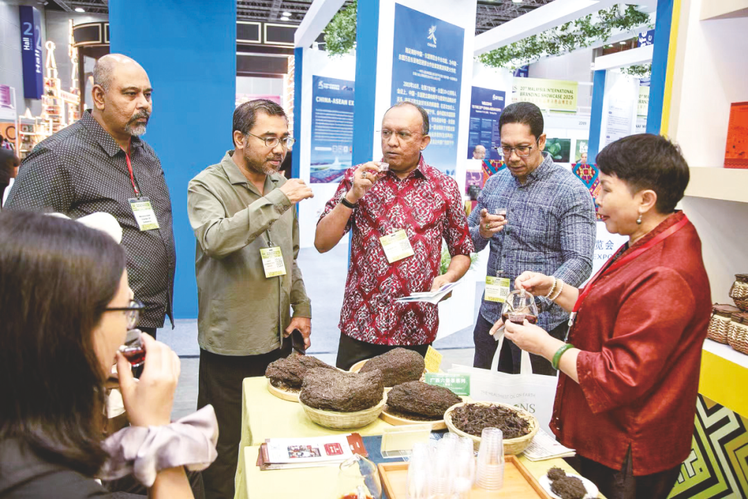 广西多个特色产品备受马来西亚客商欢迎:广西茗心茶文化传播有限公司就广西六堡茶与潜在合作伙伴建立了有效联系,品牌国际知名度得到提升;东兴市中越泰国际食品有限公司展出的休闲食品深受马来西亚经销商欢迎,现场收获意向订单。