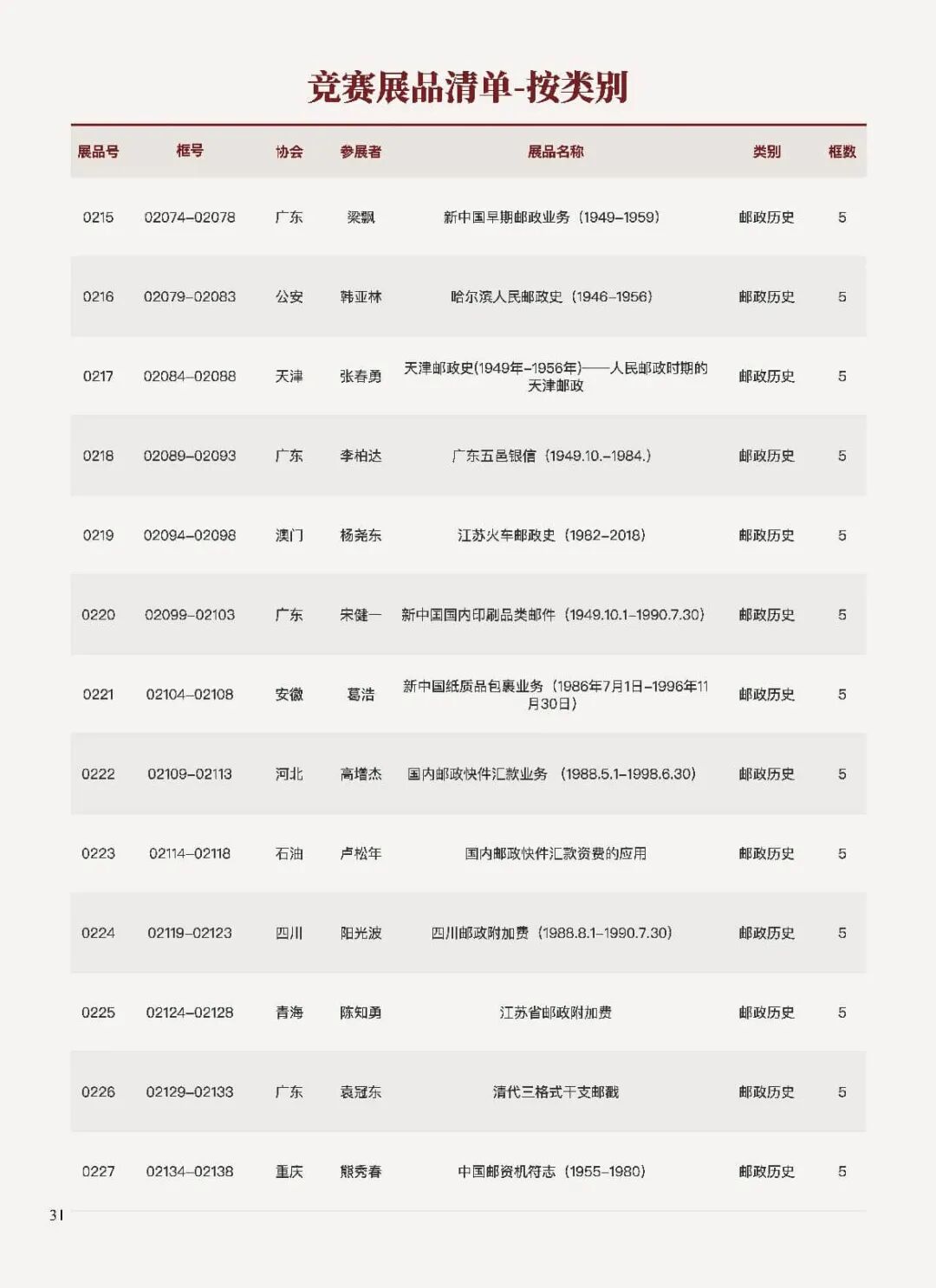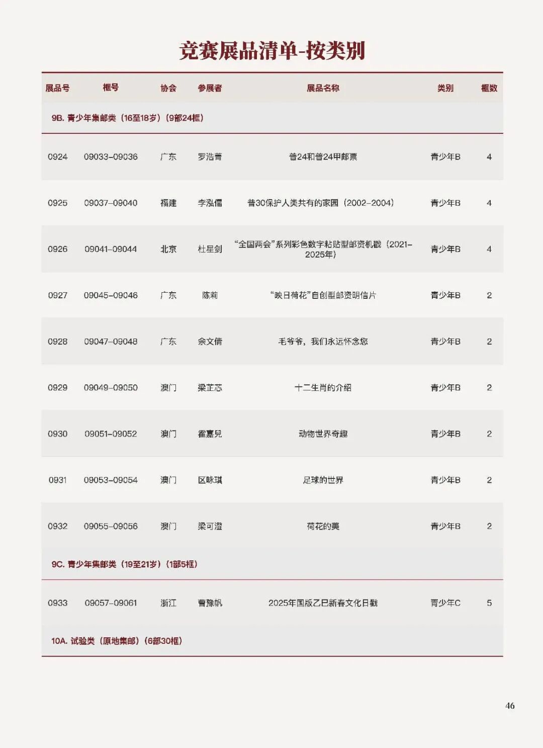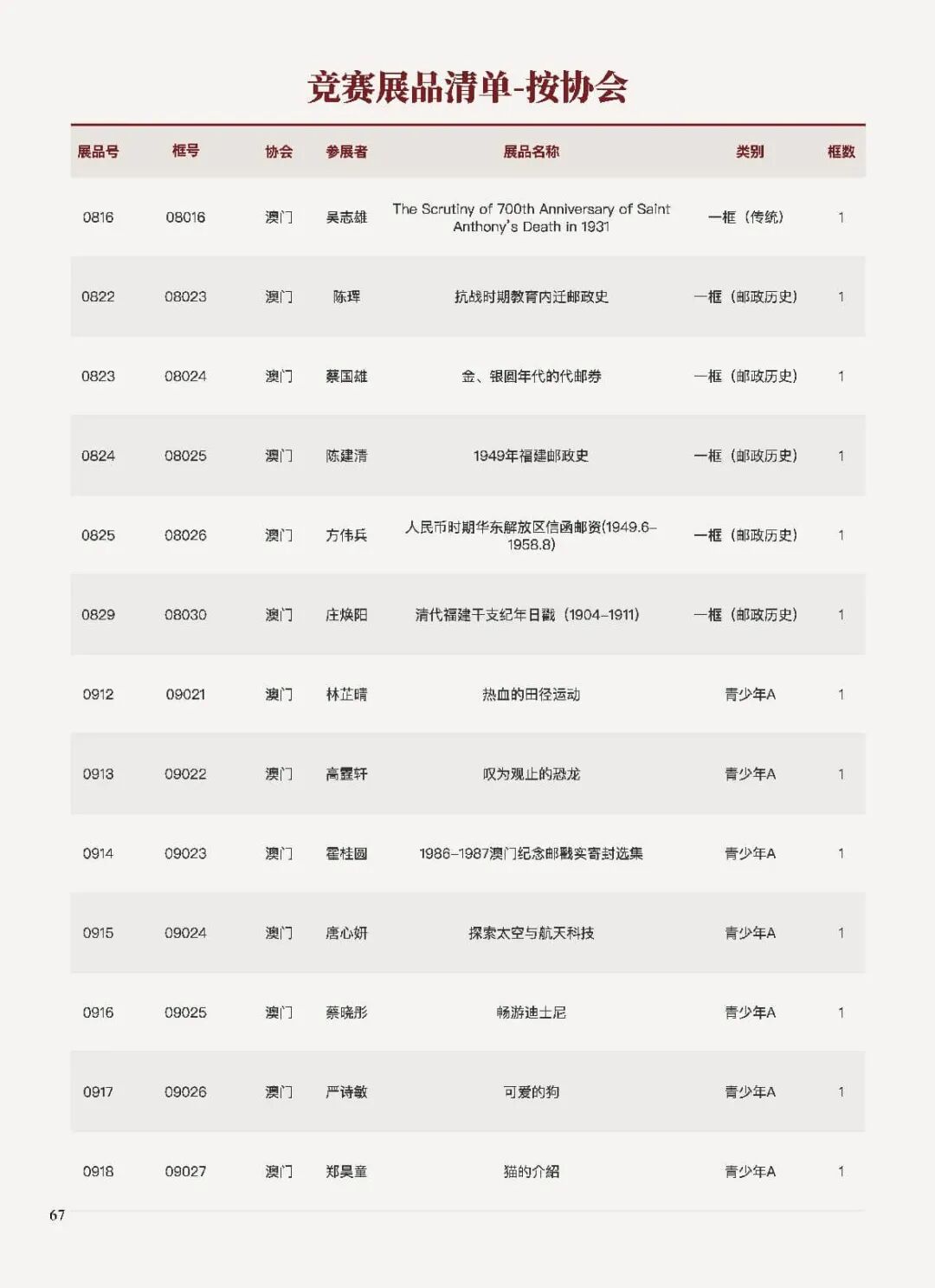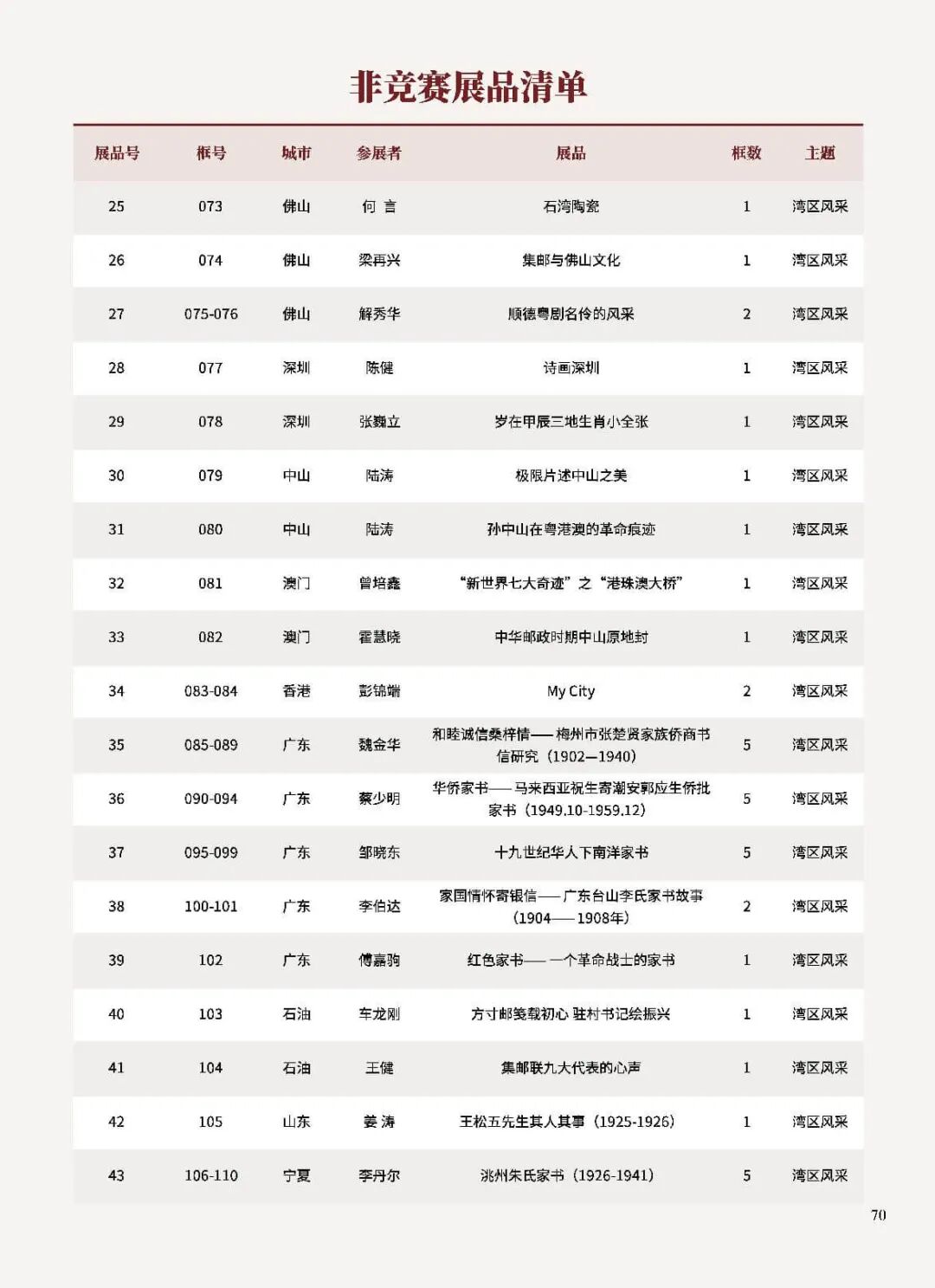 展览汇聚了全国31个省级集邮协会和澳门、香港集邮协会选送的10个类别307部1020框展品。其中竞赛展品238部842框,非竞赛展品69部178框。邮展设开幕日、湾区风采日、琴澳交流日、青少年日、闭幕日,主题活动丰富多彩、各具特色。