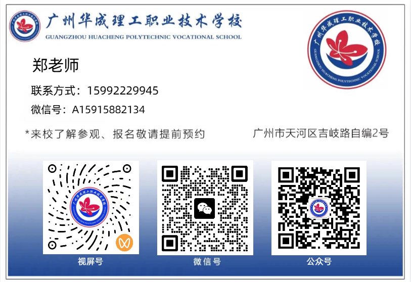 广州华成理工职业技术学校是广州市教育局批准的全日制中职校,2023 年获评广东省重点中等职业学校,坐落于广州天河区,校园占地 130 亩,常年在校生 3000 余人。学校设 5 大系部、十余门热门专业,师资由国家级名师与省市级骨干教师引领,双师型教师与中高级职称教师占比高。以职普融通为特色,主打 “3 + 证书” 高职高考,专科上线率 99%、本科上线率 36.4%,还开设三二分段培养,升学就业双通道畅通。校内实训、生活设施完备,实行封闭式管理,注重学生综合素养与专业技能双培养。
