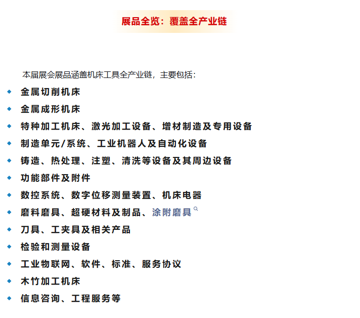 想提前锁定心仪展品?完整展品名录已上线,涵盖金属切削机床、成形机床、激光加工设备、工业机器人、数控系统、功能部件、刀具量仪等全品类展品分类信息。