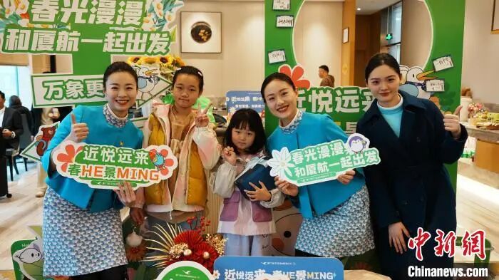 3月30日,厦门航空福州-河内直飞航线启航,图为旅客与厦门航空工作人员合影留念。