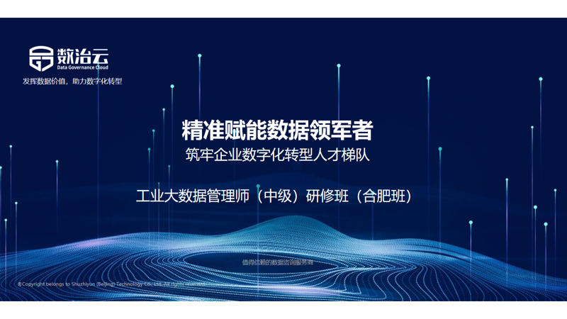 数治云(北京)科技有限责任公司联合工业和信息化部人才交流中心共同举办工业大数据管理师(中级、高级)培训认证班。截至目前,认证班已在北京、深圳、武汉、青岛、南京、郑州、上海、哈尔滨、沈阳、重庆等城市成功举办超 50 场,培养各行业数据人才超 3 万余名。