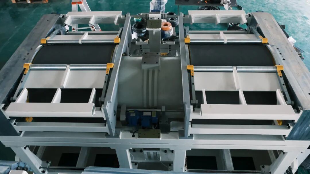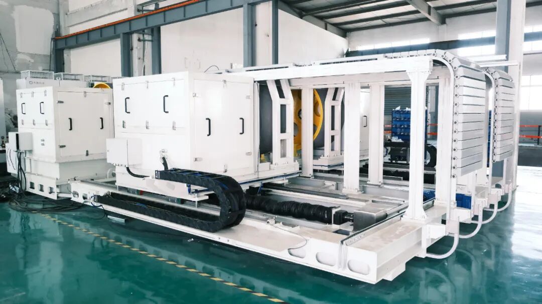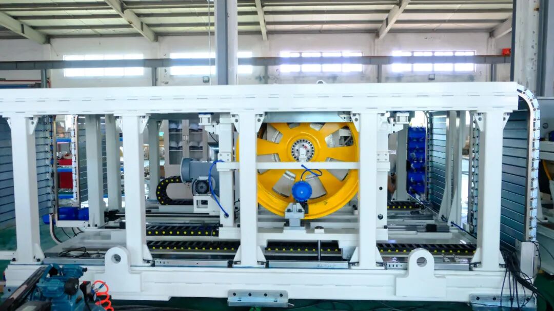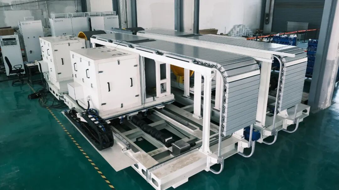 两套不同型号或品牌的两驱底盘测功机,集成为一套四驱底盘测功机,前轴固定,后轴可移动。