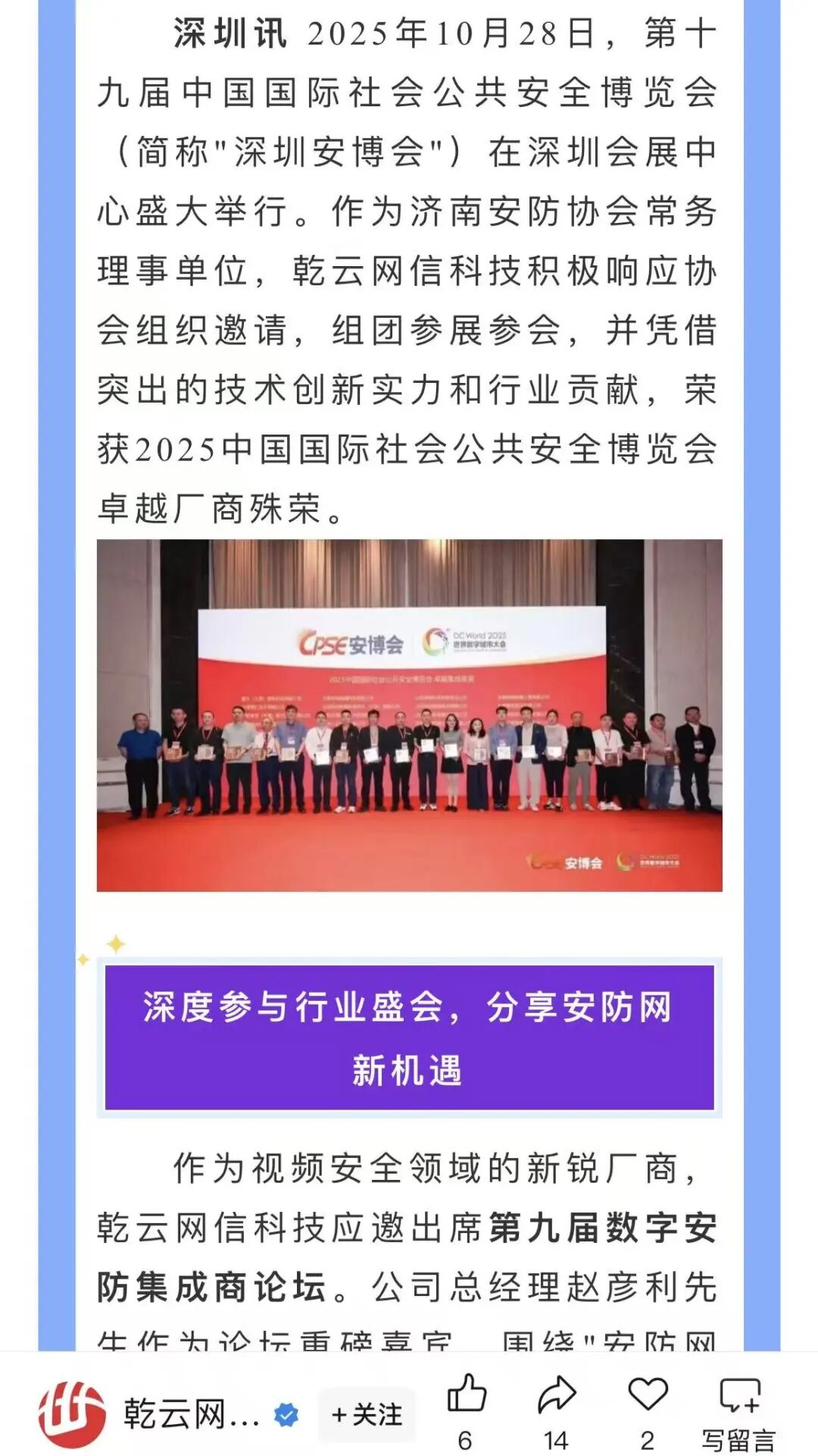 山东网信安全科技有限公司核心致力于运用零信任架构、微隔离、AI智能分析与数字水印等技术,其打造的 “视盾”视觉安全与 “乾云盾”网络安全两大产品线,已在政府、金融、能源、智能制造等多个关键领域落地应用,并获得了IDC等权威机构的关注。
