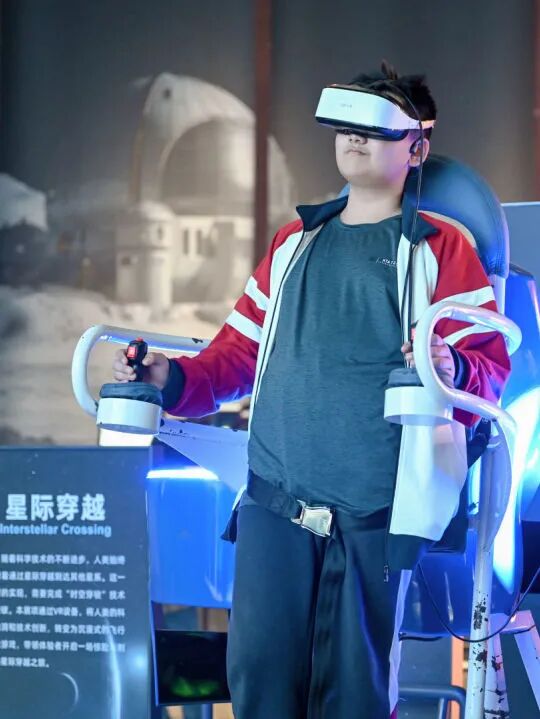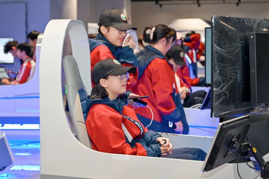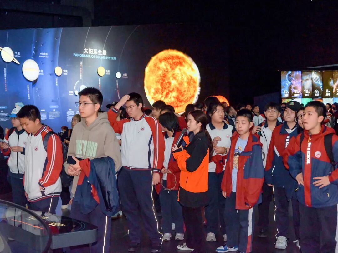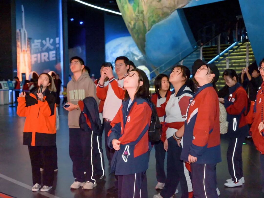 太空中心为同学们开启了一扇通向宇宙的科技之窗。金属光泽与全息投影交织的光幕,1:1还原的“天宫”空间站模型......让学生们仿佛置身真实的太空舱。在航天主题活动馆,学生们在玩乐中学习,在探索中思考,航天梦想的种子悄然萌发。