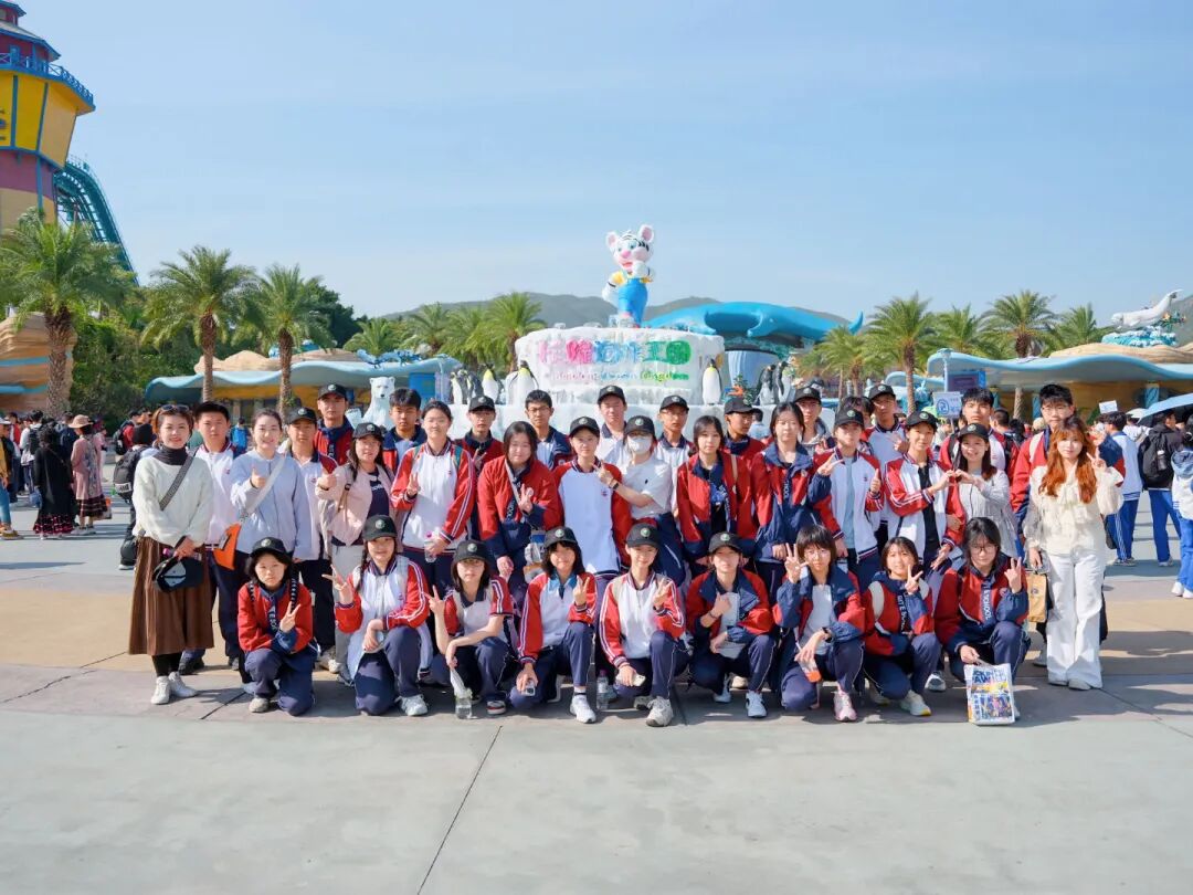在海豚剧场,聪明可爱的海豚完成了跳跃、顶球、与人共舞等一系列精彩表演,学生们在动静之间释放青春活力,更在欢乐中学习到海洋生物的智慧与灵性。