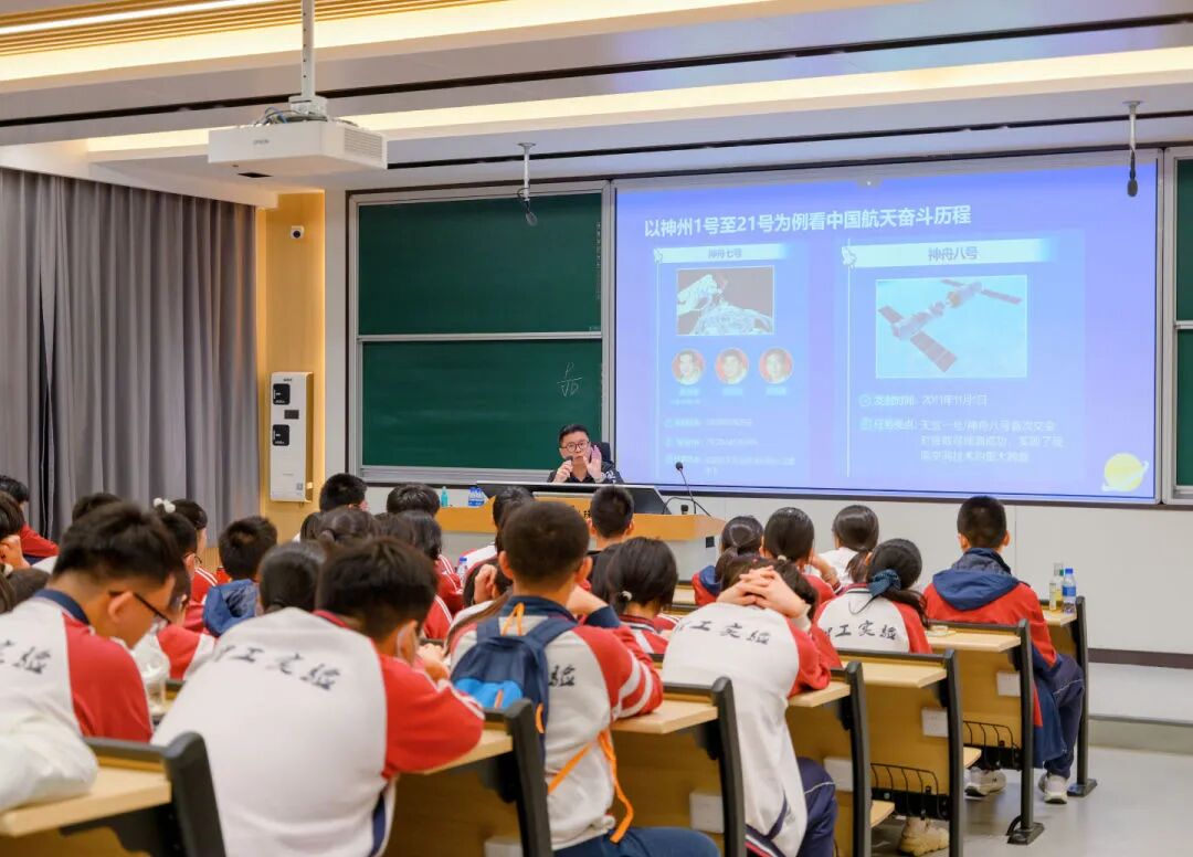 “航天逐梦,爱国铸魂”主题讲座以中国航天发展史为脉络,从“神舟”飞天到“嫦娥”探月,从“天宫”空间站到火星探测工程将学生们的视线从校园引向浩瀚宇宙。