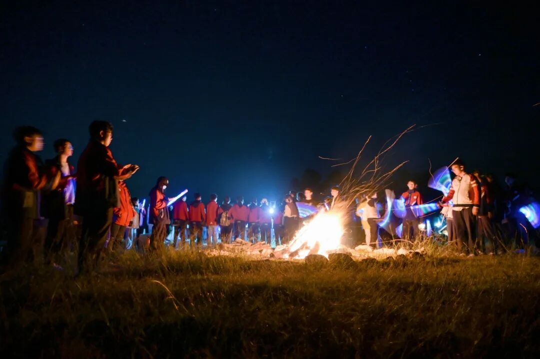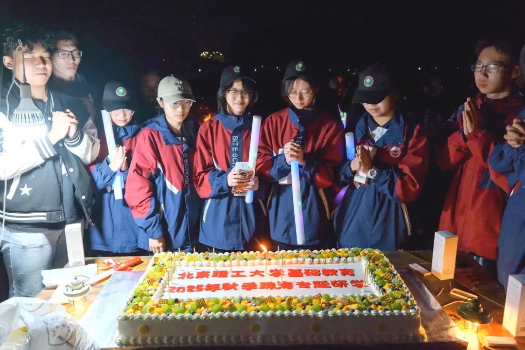 BBQ 篝火晚会与生日会温情启幕。当熊熊篝火燃起,跃动的火焰驱散了夜色的微凉,将暖意洒满营地;当熟悉的生日歌悠扬响起,点缀着烛光的蛋糕缓缓端出,我们为研学途中过生日的同学们送上真挚祝福。烛光映照着一张张青春的笑脸,欢声笑语萦绕篝火四周,温暖的情谊在晚风与火光中悄然流淌、深深传递。