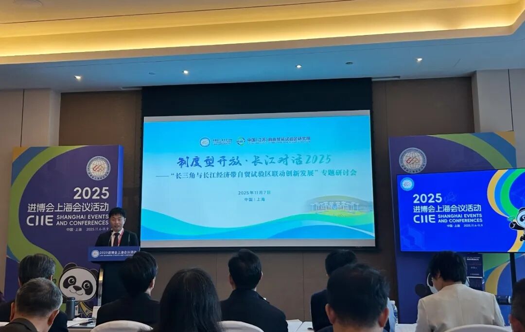 11月7日,作为进博会上海会议活动之一,由中国(江苏)自由贸易试验区研究院主办的“制度型开放・长江对话2025— 长三角与长江经济带自贸试验区联动创新发展”专题研讨会成功举办。本次会议紧扣党的二十届四中全会“稳步扩大制度型开放”“促进区域联动发展”等决策部署,以服务和融入国家战略、破解跨区域发展实践难题为目标,聚焦长三角与长江经济带自贸试验区联动发展主题,邀请了来自复旦大学、浙江大学、南京大学、中南财经政法大学、华东师范大学以及上海、江苏、安徽、四川等地政府和工商界的代表共同开展深度研讨。会议由南京大学商学院教授、中国(江苏)自由贸易试验区研究院院长韩剑主持。