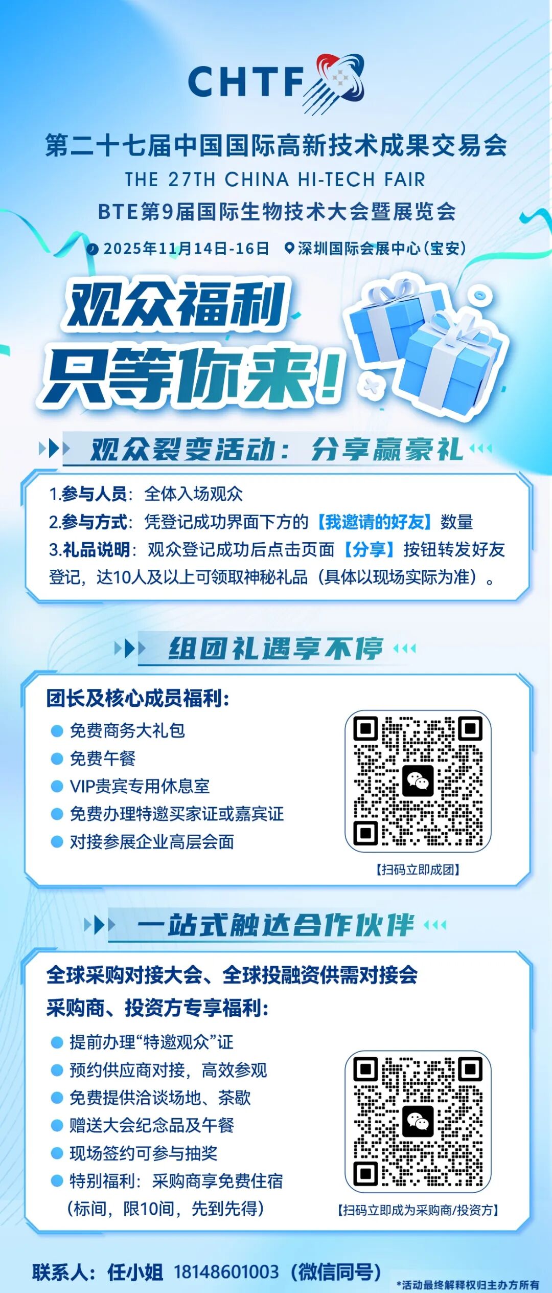 第二十七届高交会 BTE国际生物技术大会暨展览会将充分发挥平台桥梁作用,助力科技成果转化与企业资源对接。期待与您共聚盛会,共创价值。