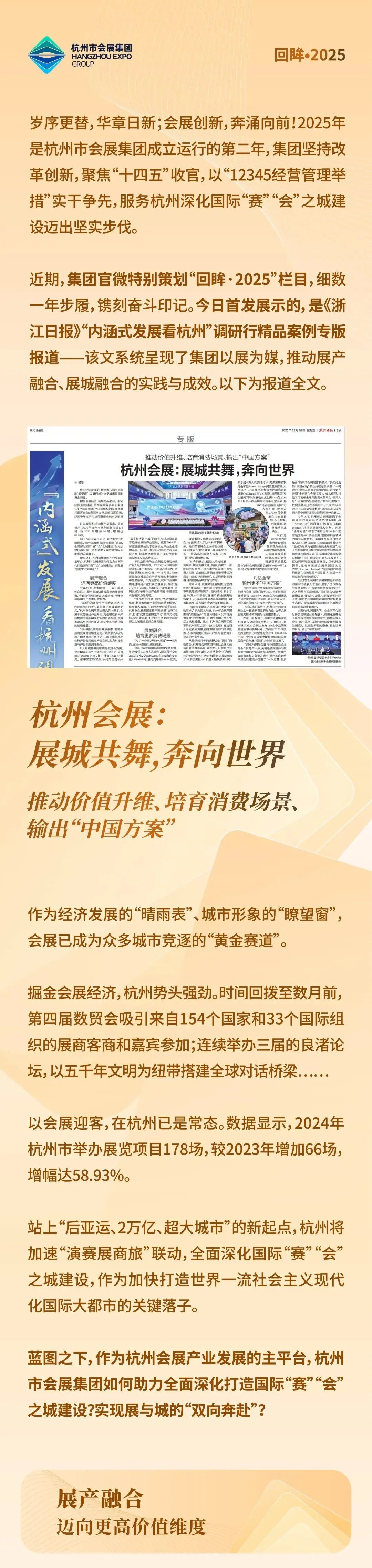 “围绕杭州打造‘296X’先进制造业集群,将探索构建产业会展运营新模型。”该负责人表示,在运营大型展会的同时,杭州市会展集团还将不断焕新“金球”名片、打造“武林之星博览中心”城市文化地标,促进业态融合,为杭州全面深化国际赛会之城建设提供会展动能。