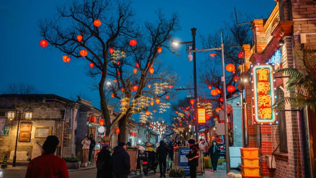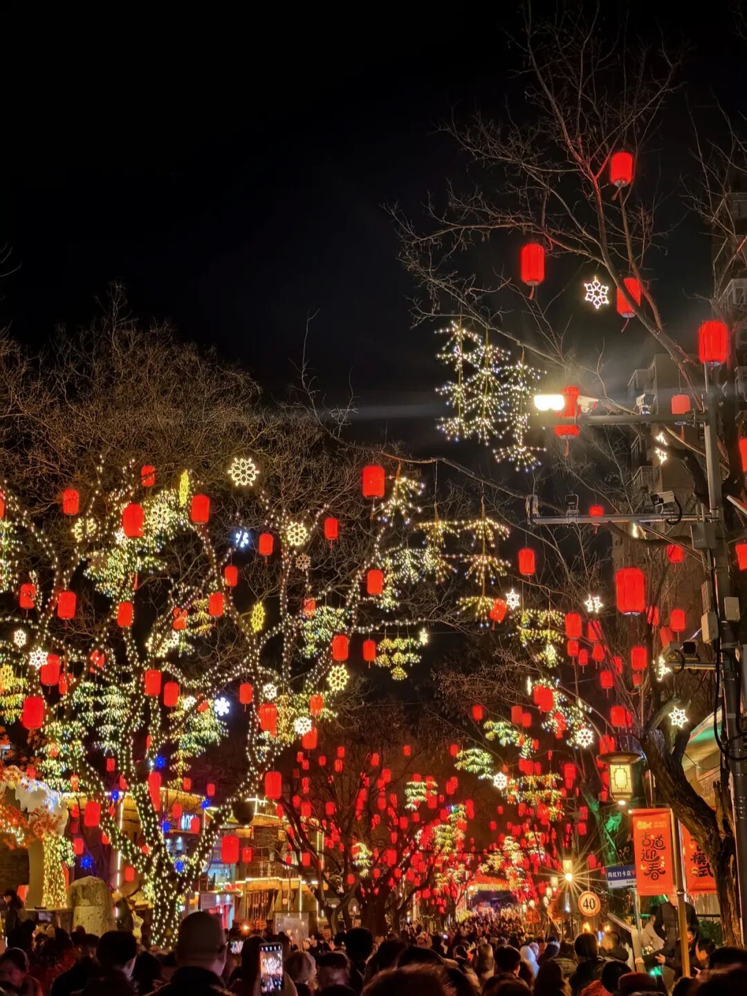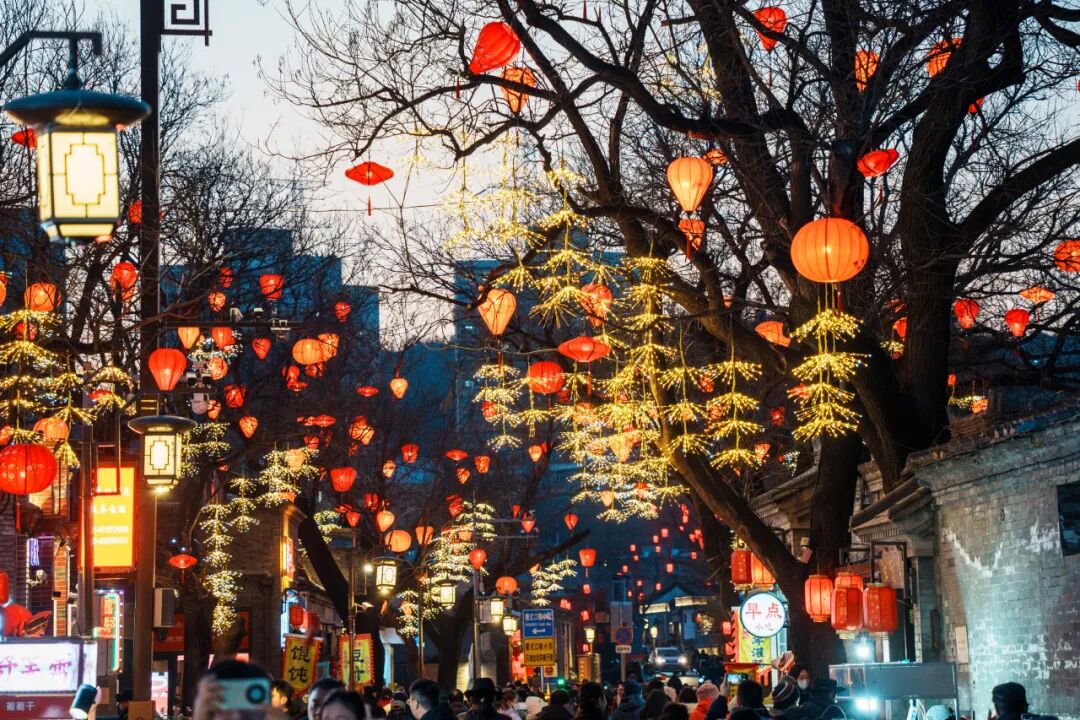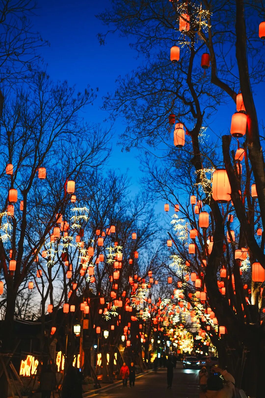 今年北京的春节真是超级热闹,大街小巷都有着浓浓的年味,模式口大街算是北京年味路线中超经典的存在。挂满灯笼的街道有着满满的老北京气息,傍晚的灯笼亮起时那种辞暮尔尔,烟火年年的氛围直接拉满。