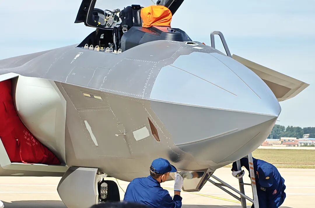 顶流还是首次静态展示的歼-20,地勤人员正用无尘布擦拭