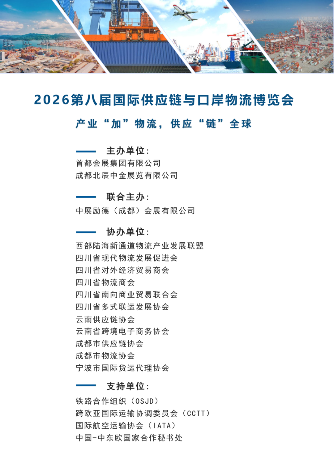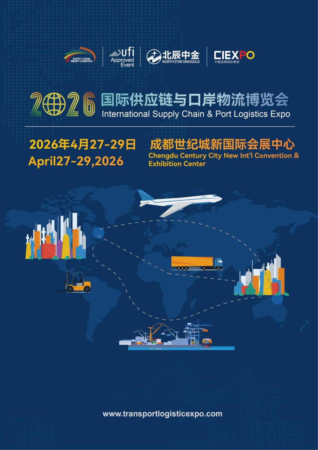 2026第八届国际供应链与口岸物流博览会(简称 “供应链与口岸物流展”)定于2026年4月27-29日在成都世纪城新国际会展中心举办。