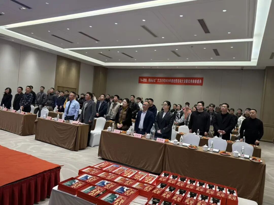 2026年2月9日,AI+智造 使命必达——2026汉卫软件年度经营启动会暨优秀表彰年会盛典圆满举办。大会伊始,全场汉卫家人们齐声唱响《金蝶之歌》,伴随着激昂嘹亮的歌声,大会盛典正式拉开帷幕!