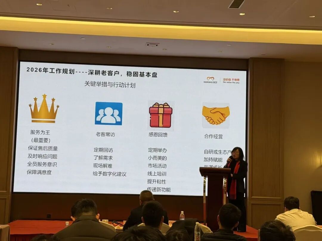 为确保2026年战略目标扎实落地,汉卫各事业部领导依次上台发言致辞,全面复盘2025年部门经营成果,规划2026年业务发展蓝图,并围绕市场开拓、业务布局、组织能力建设等核心维度,明确具体落地策略与执行路径。各业务团队将坚定以结果为导向,以实干笃行兑现对公司发展、对客户价值的郑重承诺。