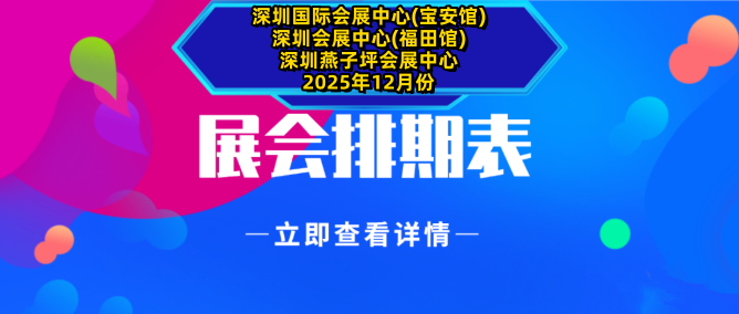 展会排期网-zhxxpq.com花费大量人力物力,坚持为大家整理编辑各地展会排期表,只因为我们知道这是您想要的信息,我们坚持做一个有内容、有价值的网络服务平台。据不完全统计,2025年12月份全国大小规模展会有近160+场,其中包括北京展会10+场,广东展会(含广州/深圳等)40+场,上海展会30+场,其它城市展会合计约80+场 等等...... 众多大牌展会悉数登场。哪些精彩展会值得您重点关注和参与?敬请留意我们后续发布的详细展会信息排期哦!