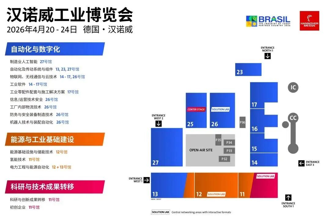 汉诺威工业博览会创办于1947年,是全球规模最大、影响力最广的工业技术盛会,被誉为世界工业发展的晴雨表。2026 年展会聚焦自动化与数字化、能源及工业基础设施、科研与技术成果转化三大块,全面呈现工业全产业链前沿技术与解决方案。
