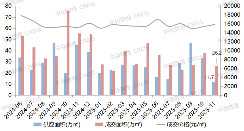 图:2024年6月-2025年11月佛山商品住宅供求价走势