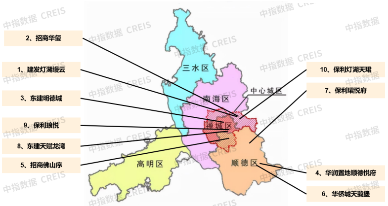 图:2025年1-11月佛山房地产项目销售金额top10项目分布