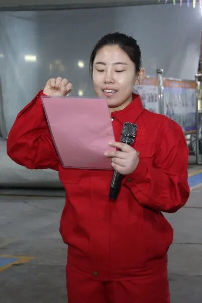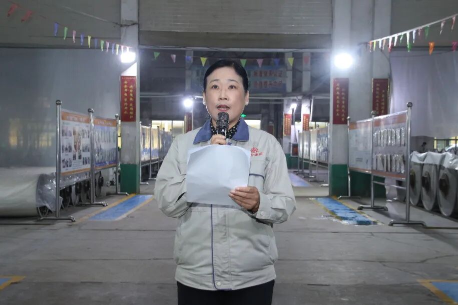 王卉君副总主持开幕式,介绍参加仪式的嘉宾,并代表织布生产线感谢各位领导亲临赛场为大家鼓劲助威。
