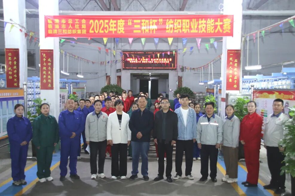10月11日上午,三和集团织布生产线2025年度“三和杯”纺织职业技能大赛开幕式在第四织布厂召开。临清市总工会党组成员、副主席初志伟,临清市职业技能指导服务中心主任李志宏,集团党委书记、工会主席许兆君,党委副书记、副总经理李召峰、副总经理王卉君及职能部门负责人、裁判员、参赛运动员代表等共计80余人参加了开幕式。